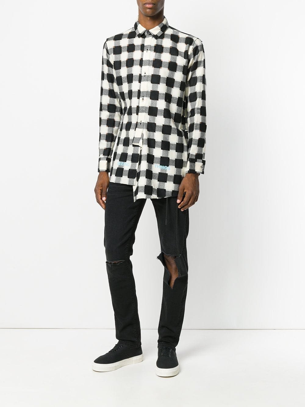 Renowned for its offbeat take on casual style, Off-White presents this black and ivory checked shirt to its AW17 collection. Expertly constructed from a high quality Italian wool blend, this shirt features a classic collar, a front button fastening, long sleeves and an asymmetric hem. Purchase this product on farfetch.com