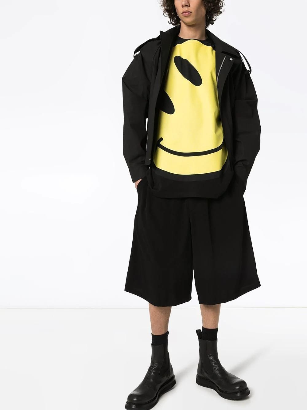 Feeling down? Why not lift yourself up from the outside-in with this T-shirt from Raf Simons and its Smiley print – if you smile on the outside, you smile on the inside, right? Either way – it’s worth finding out. Featuring a ribbed collar, short sleeves, a relaxed shape and a contrasting Smiley print.